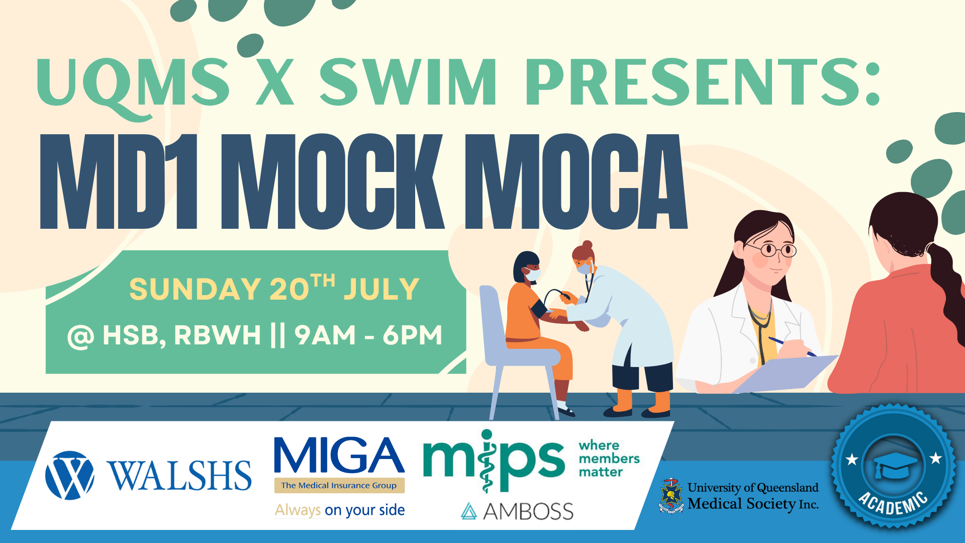 To help you prepare for this event, UQMS is collaborating with SWIM to organise a Mock MD1 MOCA on Sunday 20th July at the Health Sciences Building at RBWH.